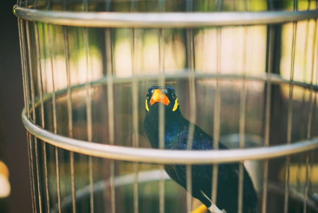 表情酷酷的“鹩哥”,一直逗它学话,却冷不丁叫你一声”娘娘”,反被它给逗乐了。