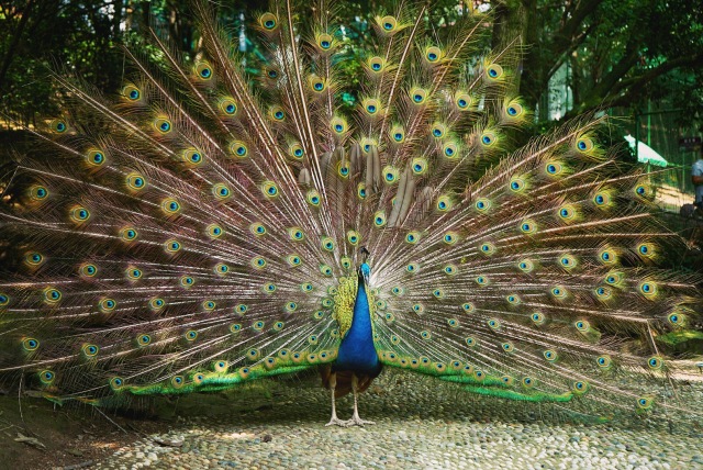 这里的孔雀不怕游客, 悠闲自在的在园里踱步,可供近距离观赏和拍照,小编这次运气不错还捕捉到了孔雀开屏难得的一幕。