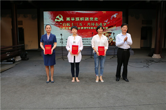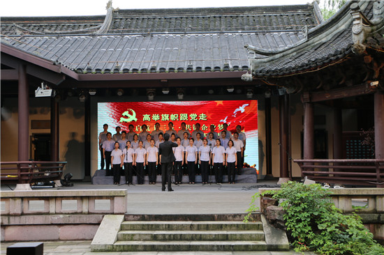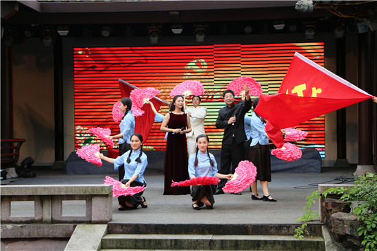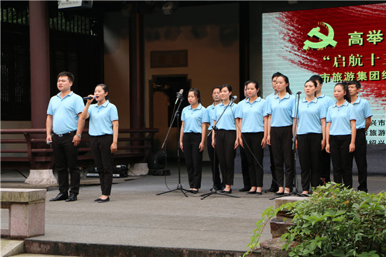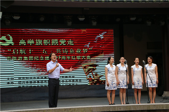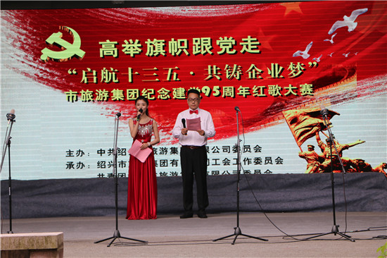 “高举旗帜跟党走——启航十三五·共铸企业梦”,6月29日下午,沈园景区南苑剧场红歌嘹亮,由中共绍兴市旅游集团有限公司委员会主办,绍兴市旅游集团有限公司工会工作委员会、共青团绍兴市旅游集团有限公司委员会承办的“绍兴市旅游集团纪念建党95周年红歌大赛”在这里举行。