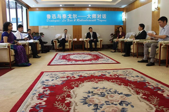 拉宾德拉纳特·泰戈尔是印度著名诗人、哲学家、亚洲首位诺贝尔文学奖获得者,是印度对于世界文化贡献的一面伟大旗帜;而鲁迅先生则是中国现代最伟大的作家、被誉为现代中国的“民族魂”。这两座“东方文学的最高峰”相聚对话,共同探讨了中印两国从古至今的文化交流历史、东方文化视野下的鲁迅与泰戈尔文化遗产、鲁迅、泰戈尔在中印文化交流中的作用以及他们的作品在中印两国读者中的影响等。