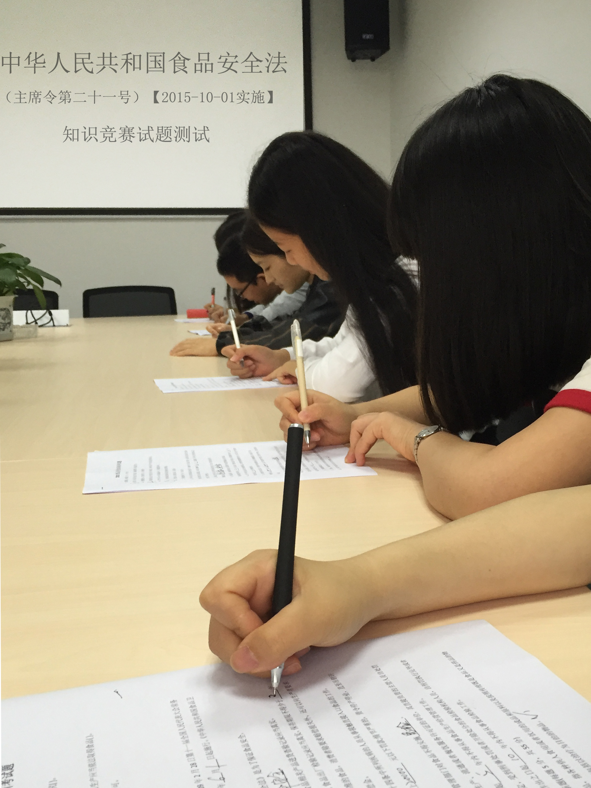 2015年10月23日,为积极响应“绍兴市食品安全委员会办公室关于认真宣传贯彻新食品安全法的通知”,我公司食堂负责人召集部分员工于小会议室进行了对于《中华人民共和国食品安全法》的专项测试。我公司本着学习好、培训好、贯彻好、落实好新食安法的指导思想,作为此次食品安全工作的重中之重,展开此次学习考核活动。