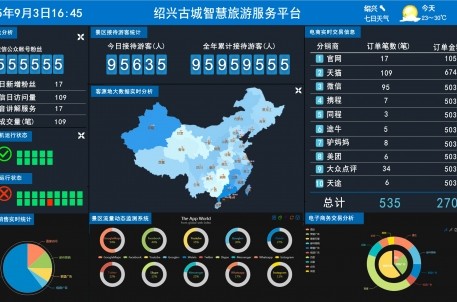 在集团信息中心的LCD大屏上,实时跳动着各类图表和数据,工作人员对当天整个在线营销、景区客流量、硬件系统等情况一目了然,让人深深感受到大数据时代的魅力。该管控平台是集团公司售检票系统升级功能的一部分,主要实现了对各类业务数据的实时呈现。