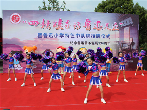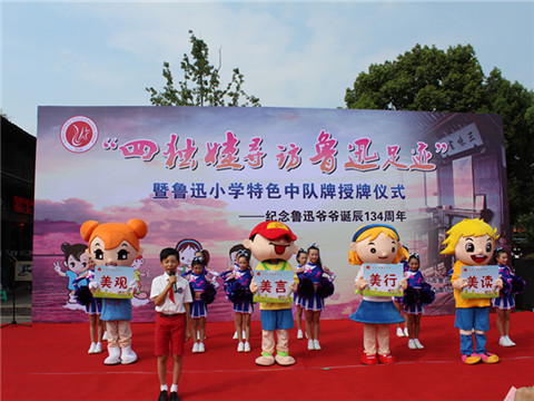 今天是鲁迅诞辰134周年纪念日。昨天下午,由鲁迅小学教育集团主办,鲁迅纪念馆协办的“四独娃”寻访鲁迅足迹出征暨鲁迅小学特色中队牌授牌仪式在鲁迅故里东广场举行。鲁小学子们以健美操表演、诗朗诵、大合唱、现场书画、特色中队牌授牌仪式和“四独娃”寻访鲁迅足迹授旗仪式等丰富多彩的活动内容展示“独立、独特、独创、独秀”的鲁小风采,弘扬鲁迅“立人”精神。(杨晔城 周洁)