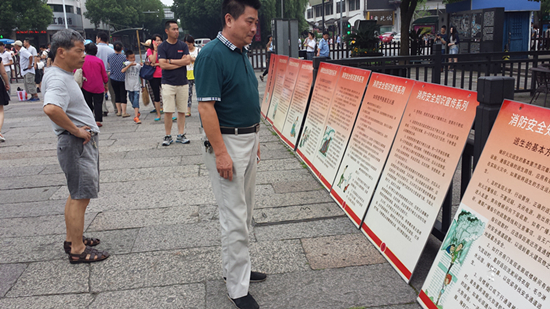 结合“安全生产月”活动,鲁迅故里景区在主街区上推出“消防安全知识宣传系列”展板,上面内容都与消防安全有关,比如火灾发生时逃生的基本方法、正确使用各类灭火器和湿毛巾防烟等,图文并茂还配有案例简析,内容非常实用,引得市民和游客朋友驻足旁观。(杨晔城)