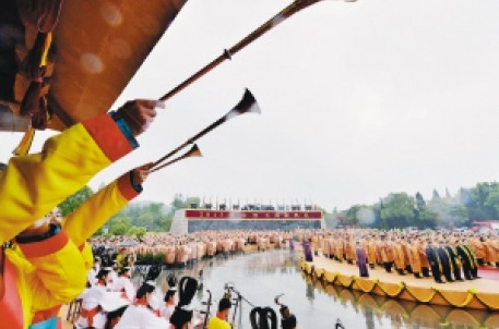 今年是新中国成立后对大禹陵首祭20周年,本次祭禹典礼由中国文联和浙江省人民政府主办,市人民政府和中国民间文艺家协会承办,典礼采用古代最高礼祭——“禘礼”形式进行。