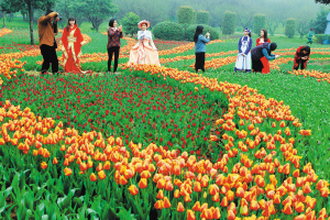 2015绍兴会稽山朝花季——宛委山樱花节和会稽山郁金香节今天开园迎客。许多市民一早就赶来赏花踏春,享受美妙的惬意时光。大家在“花花世界”里穿行,在花的世界里放飞七彩心情。市民张小姐开心地告诉记者,今年的郁金香布置和去年又不一样了,成片的橘红色好有新鲜感。据了解,越城区、柯桥区、上虞区的市民赏花可享受20元一张的优惠门票。(石皎月 摄)