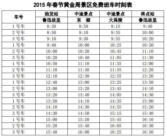 1.春节黄金周景区旅游巴士开行时间:2015年2月19日-24日。