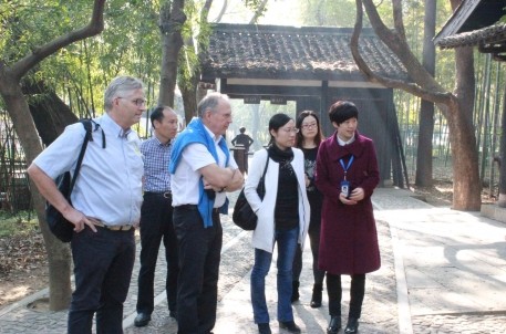 往年的小雪节气,天气已近寒冷,而今年今日却是阳光明媚,惬意无比。11月22日,国际划联马拉松委员会主席约翰波 克罗博格和技术官员鲁格斯彼特 黑塞拉一行饶有兴致的参观了书法圣地——兰亭。