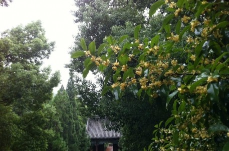 走进禹庙,一股桂花的清香扑鼻而来,沁人心脾。我闭上眼,深呼吸,色香味一齐袭来,一种如临仙境的意境。我痴痴地陶醉于此,久久不愿睁开眼睛。它的清香,随了雨,随了风,缥缈悠远……