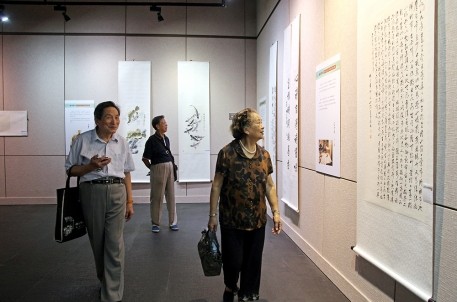 征集活动从2012年7月开始,历经两年时间,共收到老年书画家及爱好者的作品56件。经筛选,本次展览共展出27位作者的39件书画作品,这些作品内容丰富、形式多样,展示了绍兴老年书画家及爱好者爱国爱乡情怀。