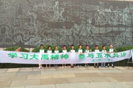 8月12日下午,树人小学二(7)班向日葵中队绿梦小队10名小队员,在大禹陵景区参加了“学习大禹精神 ,参与五水共治”的暑期公益活动。小队员们学习了“五水共治”的内容和意义——治污水、防洪水、排涝水、保供水、抓节水,明确五水共治的好处,通过本次活动激发了队员们积极参与五水共治活动的热情。本次活动还通过拔草、浇水、施肥等劳动,提醒队员们植绿护水、人水相关的重要性,并使他们体会到烈日下劳动的辛苦,在困难面前不退缩的坚强意志,奋勇向前的良好习惯。