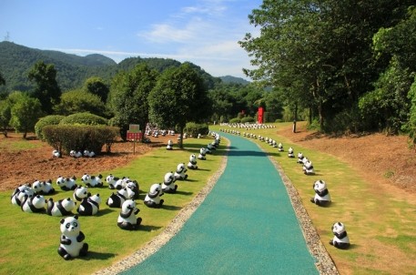 据会稽山景区副主任宋亚娜介绍,大熊猫在地球上生存了至少800万年,而目前种群数量下降到1000只以下。景区内这些“大熊猫”全部是以环保纸、石膏为主要制作材料,纯手工打造的,最小的仅高50厘米,“大熊猫”身上的彩绘也全部由手工精心喷涂,希望唤起人们保护濒危动物的意识。