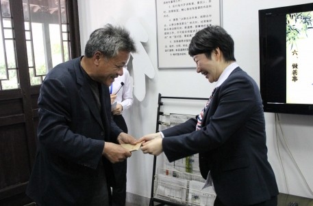 道德,重在传承。结合景区实际,向劳模看齐。此次道德讲堂上,结合绍兴市总工会工作指示,景区主任特意为默默奉献,敬业爱岗的绍兴市劳动模范赵智德同志发放了慰问金,以此肯定劳模工作,继而树立劳模旗帜,并希望通过劳模典型引导广大员工将这份崇高的职业道德一代又一代的传承下去。
