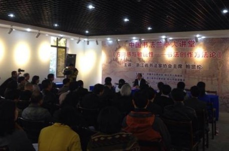 第三十届中国兰亭书法节系列活动之“中国书法兰亭大讲堂”于4月2日下午两点在兰亭景区瓷砚馆开讲。本次活动由中国书法家协会和绍兴市人民政府联合主办,浙江省书法家协会和绍兴市旅游集团承办,邀请浙江省书法家协会主席鲍贤伦主讲,讲堂内容为“方向感与敏锐性——书法创作方法论”。