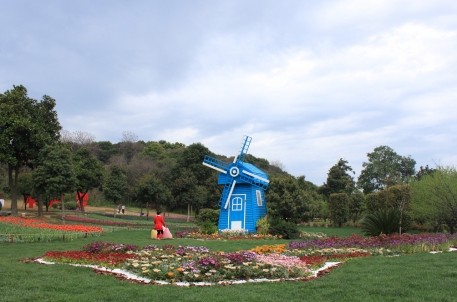 绿树青山依旧繁茂,红梅白梅傲气凌人,梨花初显盛开之势,郁金香也在花卉园内呈现出一片蓄势待发之状。其中尤以班雅、脆皮玛丽、纯金、玛雅、法国之光、迈阿密日落、达尔文橙色、荷兰美人弗拉明戈等品种为主的50款郁金香最为焦点,配之以大西洋、蓝星、粉珍珠、亚美尼亚、蓝蒂为代表的11款风信子及4款洋水仙,并用各色野花点缀其中,勾勒出“行云流水”、“越乡花谷”、“花田喜事”、“印象绍兴”、“大禹疏水”等景观带,远近交融,高低相携。花卉园内春花绿树相间,长廊木亭相配,原来恐龙园内的30余条仿真恐龙情景交融,真实新颖的蝴蝶谷坐落其中,并点缀以风车、木鞋、喜羊羊、“中国梦”等造型小景点,成就一片不一样的花卉天地,打造一座别具一格的会稽山。