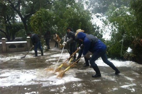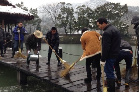 近期,因雨雪频繁,兰亭景区内外经常白雪覆盖,地面湿滑,竹子、树木被压弯、压断,不仅行走困难,更存在较大的安全隐患。为保护景区环境,确保游线顺畅,保障旅游安全,景区总是第一时间快速响应,自觉有序地组织开展抗雪清障工作。在景区领导带领下,主要由男职工组成的扫雪突击队冒着严寒与冰冻,沿着游客参观路线用扫把、铲子、水泵、水桶、钩刀等工具扫雪、铲雪、冲雪、打雪,清除被大雪压倒的残枝断树,高效率、高质量地迅速清除了积雪,确保了游线通畅和参观安全,在几次大雪中,景区的正常开放都丝毫不受影响。为体现细节服务和人文关怀,我们不仅加强了保安巡查力度,还在多处设置了提醒告示牌,售检票、讲解、展厅等一线岗位更不厌其烦对每位入园游客进行温馨的提醒,遇到年老体弱者,景区还派人陪同参观,以确保游客安全万无一失。
