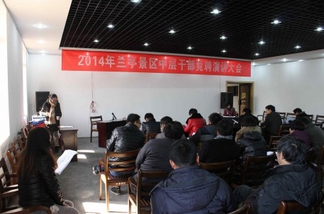 为了加强队伍建设,进一步规范与提升内部管理,2014年1月,兰亭景区组织实施了中层干部竞聘上岗工作,面向全体职工推出四个部室共10个中层干部岗位,公开选拔优秀干部。竞聘方案出台后,共有13名符合条件的员工积极报名参加。1月23日,竞聘演讲大会在兰亭瓷砚馆大讲堂举行,13名通过资格审查的竞聘者上台进行了竞聘演讲,由集团公司人力资源部经理甘全红、景区领导班子和景区群众代表组成的考核评分小组根据竞聘者的综合表现进行了打分。最后,景区领导班子根据竞聘排名情况,经过讨论,决定择优录用王姚威等10人担任办公室、游客中心(接待部)、产业部、营销策划部四个部室的中层,聘期1年。