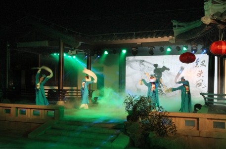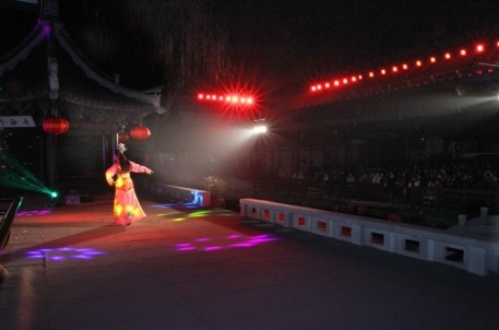 沈园之夜堂会节目自2008年开演以来,凭借新颖的文化创意,古今合璧的节目内容,诙谐幽默的说学逗唱,受到市场追捧,逐渐发展成为绍兴夜游的一个旅游品牌,填补了绍兴城市晚间休闲夜游的空白。2013年,沈园之夜全年接待游客8万余人次,合计上演近400场,景区虽在周末及黄金周期间每晚加场加演,却仍出现一票难求的火爆场面。为满足市场需求,缓解景区接待压力,酝酿中的南苑新剧场于今年10月开土动工,沈园景区在原南苑舞台的基础上,遵循《沈园情》堂会的节目风格,重新设计建造了一个既古朴又现代的大型剧场,此次新投入使用的南苑新剧场面积达两千平米 ,共设有贵宾席和普通观众席500座。