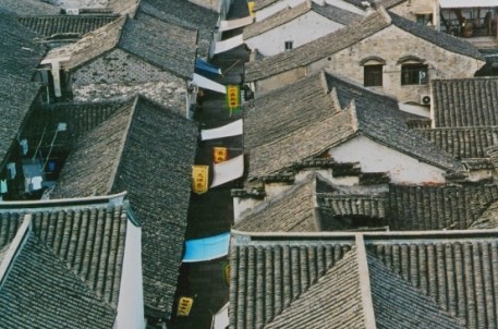 老街其实是绍兴城内的一处街市民居,这里的建筑基本都原汁原味的保存着清末民初的风韵。街长1.5公里,其宽也不过数尺,两边住家参差错落,小街两侧酒肆茶楼旗幡招展。户户临水,家家枕河。老街更是背山临水尽得天然造化,在与直街并行的右侧,是一条长长的古河,河的两岸就是粉墙黛瓦的民居,每家都修有通到河边的石阶,绍兴人称之为“河埠头”,这是供人们到河边洗菜洗衣,如有船只停靠,也可从这里上岸。粉墙玄瓦,倒映于水中,共同营造出一种深邃静谧的意境。间或有小巧的乌篷船划破水面,带给你江南水乡的独特韵味,那么历久和清新,令人沉醉,难以释怀。人称它为“东方威尼斯”,并不夸张,如果把威尼斯比作一幅油画,这里则是一幅淡雅的水墨画。小桥流水人家真正是绍兴城内的的一道风景。