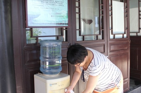 为关爱员工,振奋人心,增强凝聚力,近日,兰亭景区团支部开展了“青”凉“益”夏——青年文明号公益季活动,景区宣教部、办公室、接待部各派出几名青年团员将一杯杯冰镇绿豆汤、扇子、清凉油等防暑物品,送到正在高温天气下坚持户外工作的一线员工手上,团员青年们还主动接过绿化工师傅手中的水枪,继续为景区植被注水。