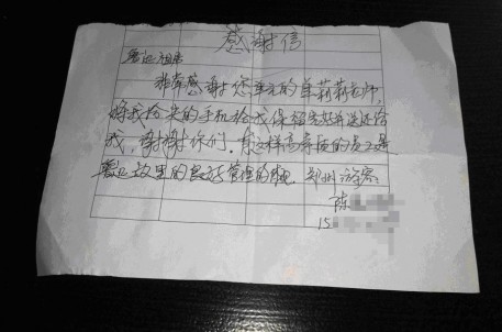 (为保护失主隐私,信中所留姓名与手机号码做马赛克处理。)