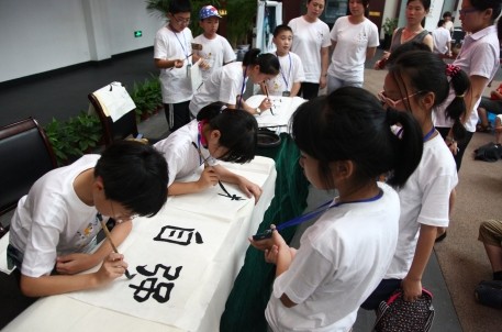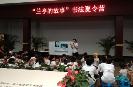7月16日,由绍兴博物馆和兰亭景区联合举办的“兰亭的故事”书法夏令营在绍兴博物馆开营,来自鉴湖镇、府山街道的40名小学生参加了为期一天的书法夏令营活动。本次活动是绍兴博物馆继“‘兰亭的故事’讲座进校园”、“‘兰亭的故事’展览进社区”之后的又一个“兰亭的故事”系列性活动。