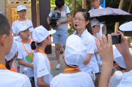 此次活动中,我景区也特地为这支队伍安排了一名优秀的讲解员,全程为老师和孩子们提供免费的讲解。讲解过程中,看得出孩子们都很兴奋,他们都喜欢围着我们的讲解员叽叽喳喳地问个不停,我们的讲解员都耐心详细的为他们一一作答。从大禹陵碑到禹庙大殿,每个孩子都听得很认真,通过我们讲解员细致的讲解,孩子们从中学到了很多。在这站活动快结束时,还有几位孩子和家长接受了记者的采访,表达了他们对这样的公益活动的看法。结束后,我们看到的是他们那一张张满载着知识而归的脸。