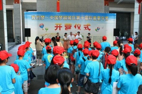 7月12日上午,由越城区关工委、区社教委、区科协、区文教局主办,北海街道办事处承办的“我的梦 中国梦”越城区第十届科普夏令营开营仪式在黄酒博物馆大厅隆重举行。区关工委主任、社教委副主任江柏松,区科协主席俞谷松,北海街道副主任陈彩娟等区、街领导与百余名小营员们出席了今天的开营仪式。