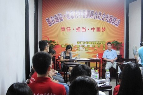 6月30日上午9点,北京大学元培学院和浙江农业商贸职业技术学院的师生们在绍兴蔡元培故居举行了以“责任、担当、中国梦”为主题的大学生暑期社会实践活动启动仪式。启动仪式由绍兴市名人研究所所长章大国主持,浙农商院书记邵田田和绍兴市旅游集团有限公司董事长沈安龙先出席本次活动并作了热情洋溢的发言。