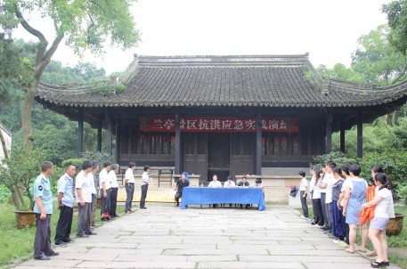 6月21日下午,兰亭景区组织抗洪防涝应急处理实战演练,景区全体职工、经营人员参加,集团公司副总经理戚乐安和职能部室企管部莅临指导。这是自景区开放以来的第一次抗洪防涝实战演习。
