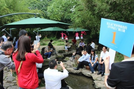 5月31日下午,由国务院侨务办公室主办,以“绽放青春光彩•共圆共享中华梦想”为主题的第九届世界华裔杰出青年华夏行活动走进了古城绍兴,走进了书法圣地兰亭。90多位华裔杰出青年参观景区,体验书法,还兴致勃勃地参与了景区特意安排的仿古曲水流觞演艺活动,用不甚流利的中文创作打油诗,现场气氛活泼热烈。 在这次兰亭行活动中,来自不同国家的华裔青年们了解了中国书法,感受了《兰亭序》的魅力和中华传统文化艺术的精髓。据悉,华裔青年们上午还参观了鲁迅故里。