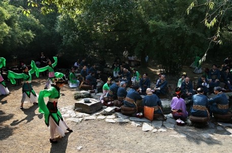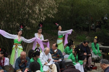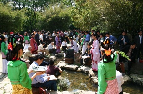 曲水流觞演艺活动是兰亭景区的特色活动,经过多年的不断提炼、完善与提升,现在的活动主要由沐手焚香、祭拜神祗,修禊舞韵、吉祥如意,香薰洒身、消灾祈福,曲水流觞,饮酒赋诗四个环节组成。景区宣教部女职工组成的演艺活动小组不仅每天为海内外游客表演和互动,还承接了大量企事业单位、文化团体、旅行团队的专项活动,得到游客朋友、社会各界的广泛好评,不仅进一步树立了兰亭雅集——曲水流觞的活动品牌,更进一步传承了书法文化,兰亭文化,提升了景区的形象与品位。