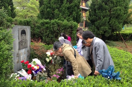 4月6日一早,居住在上海的蔡元培儿媳杨心月女士来到绍兴,在绍兴市名人故居管理处和诸暨陈蔡村蔡氏宗亲会人员的陪同下,一行十余人来到会稽山天福园公墓为蔡元培的儿子蔡怀新和孙子蔡朝晖扫墓。蔡怀新由蔡元培第三任夫人周峻女士所生,退休前是复旦大学物理系教授,著有《基础物理学》等书,去世后长眠绍兴。