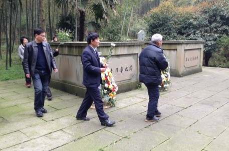4月1日上午,绍兴市名人故居管理处组织徐锡麟、秋瑾、陶成章三位烈士后裔以及景区员工一同赴杭州辛亥革命纪念馆、西湖孤山秋瑾墓祭祀,并向三位烈士墓敬献了花篮。烈士后裔说,虽然辛亥革命已经过去一百多年,但是我们要理解传统文化的精神内涵、了解辛亥革命历史,传承革命精神。