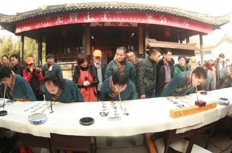 12月8日上午,一场特殊的兰亭雅集活动在书法圣地举行。这是由中国残联和绍兴市残疾人联合会举办的“兰亭杯”全国残疾人书法大赛中特别安排的一个活动——“无臂七子”笔会兰亭活动。和志刚、黄国富、杨杰、刘京生、丁京华、陈伟强、石小华等七位在全国残疾人书法界有名的无臂书法家共聚兰亭,曲水流觞,泼墨挥毫,展示了残疾人书法家的艺术风采和自强不息的精神。中国残联副主席吕世明、中国残联宣文部部长王涛来到现场。