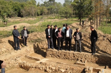 11月13日上午,全国政协文史和学习委员会副主任周国富一行在市委副书记、市长钱建民,市委副书记王文序,副市长冯建荣,市旅游协会会长顾秋麟,市旅游集团董事长沈安龙等人的陪同下,来到兰亭景区考察天章寺遗址考古挖掘情况。在考古现场,浙江省考古所所长李小宁向领导们详细介绍了考古挖掘的整体情况,并分析了目前发现的天章寺遗址的整体布局和不同朝代分段情况等相关内容。