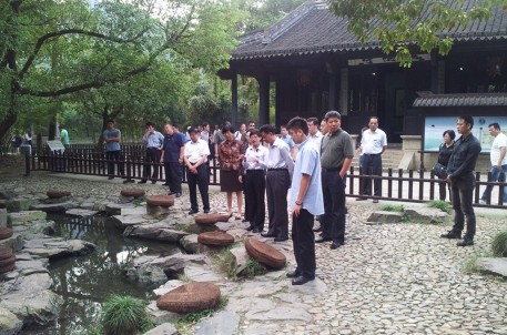 9月26日下午,原全国政协副主席、高级工程师王忠禹先生及夫人参观了兰亭景区,浙江省政协副主席李青、绍兴市政协副主席解晓波一行陪同参观。 王主席一下车就赞叹这里环境宜人,伴着秋风习习的凉爽气候,感觉身心愉悦。进入到景区内,在细心听取讲解员的讲解后,时不时地和讲解员探讨王羲之的书法以及《兰亭集序》的有关内容,并在主要景点合影留念。随后,在曲水流觞处效仿古人饮酒赋诗,对千年的历史表现出了浓厚的兴趣。在离开的时候,王主席还特别表示不虚此行。