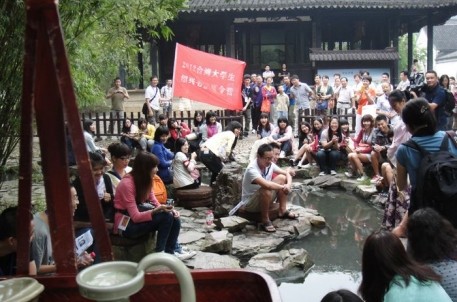 8月23日上午,2012年台湾大学生绍兴市书法研习夏令营在兰亭景区王右军祠开营。参加开营仪式的有国台办、省台办、市台办、兰亭书法学院领导和来台湾大学生、绍兴文理学院大学生等。在开营仪式上,市台办领导致欢迎词,书法学院领导授夏令营营旗,学生代表讲话。开营仪式结束后,台湾大学生饶有兴趣的参加了景区为其精心准备的曲水流觞和临池十八缸学书活动。在曲水流觞处,两岸学子纷纷饮酒作诗、唱歌,气氛活跃,充分展示了当代大学生多才多艺的风采。在临池十八缸处,学生们拿起毛笔金砖习字,领悟“吾儿练尽三缸水,唯有一点像羲之”的典故内涵。