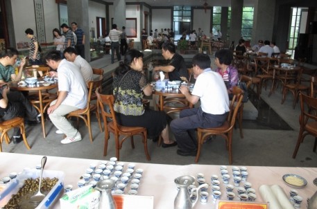 多名来自外地的贵宾到黄酒城参观考察。为使客人更好的体验绍兴黄酒,了解黄酒文化,黄酒城特地安排了自助式品酒活动:在长桌上依次放上四大品种绍兴酒,并配上茴香豆,咸煮花生、臭豆腐等过酒胚,让客人根据自己的需要自由选取。这次接待活动得到了市经信委领导的赞赏,也为黄酒城在接待大型团队品酒时作了一次有益的尝试。