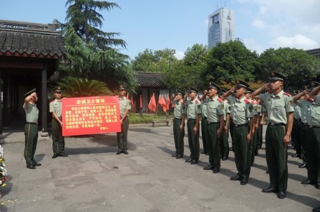2012年8月1日是建军85周年,绍兴武警支队组织近60名武警官兵在周恩来纪念广场举行重温忠诚卫士宣誓活动。