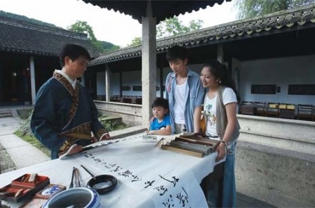 为配合暑期亲子游市场,进一步打响“跟着课本游绍兴”的旅游品牌,绍兴市旅游集团第三部旅游微电影《爱在绍兴》将于7月12日温情亮相。家是一世的风情,电影选取了生活在现代都市千万家庭中的一个缩影,父亲张扬和母亲沈随心因忙于工作疏于对孩子张佳的关心,父子之间一度产生了隔阂。趁着暑假,一家三口一起来到古城绍兴,爸爸妈妈陪着孩子去了鲁迅故里,从三味书屋到百草园,吃当地的特色美食,去周恩来祖居瞻仰伟人,还一起去兰亭看鹅池、流觞亭、御碑亭和沙盘习字,请书法家在纸扇上题字……在游览的过程中,父母和孩子都重新找回了久违的温情。“有爸爸妈妈在身边,即使他们不对我说一句话,只是默默微笑着,但我能感觉,这就是爱,这就是幸福。”张佳回去之后,在作文《爱在绍兴》中这样写到。微电影《爱在绍兴》以家庭温情为线索,紧密融合家喻户晓的绍兴特色旅游产品品牌——“跟着课本绍兴”,影片多处出现 “三味早读”“百草园”和“兰亭”等元素,一定会让大家“穿越”到课本中的情境,勾起无数美好回忆。