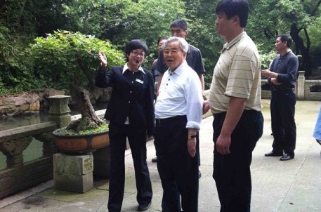 5月21日上午,全国人大常委会原副委员长曹志在省人大常委会办公厅副巡视员王新华、市人大常委会副主任施淑汝等人陪同下参观兰亭。 84岁高龄的曹老因刚参观了鲁迅故里,显得有点疲倦,但坚持自己行走。曹老对兰亭的清幽环境和厚重文化赞赏有加,一路仔细倾听讲解,并不时停下脚步感受竹林幽静。 最后,在景区的标志性建筑兰亭碑亭前,曹老合影留念。