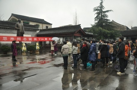 3月5日是周恩来总理诞辰114周年纪念日。绍兴周恩来纪念馆在周恩来纪念广场举行“周恩来在上海”展览开幕式。中共一大会址纪念馆党支部书记赵绵池、上海周公馆副主任纪敏、周恩来侄孙女周蓉、名人故居管理处有关领导出席了开幕式。