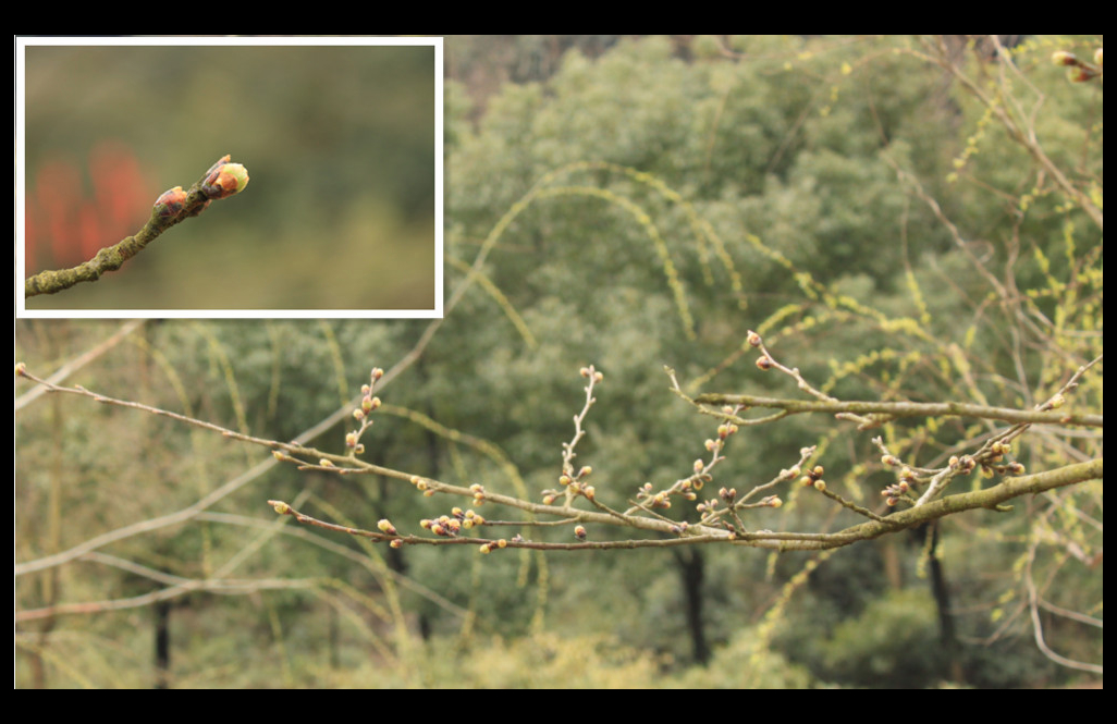 嫩红色的小芽在雨水的滋润下陆陆续续的从树枝间抽出来了,让我们欣喜万分。
