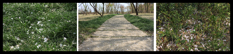 一夜狂风中舞尽了最后一曲。樱花林的美很短暂,浪漫过了,留下五角形的花蕊在风中颤