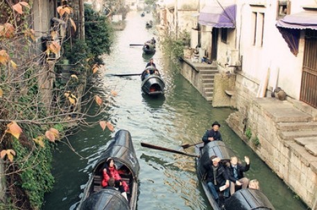 上放一块跳板,放上黄酒、过酒胚(茴香豆、豆腐干、醉鱼等),尽享一段悠哉的水巷之旅。