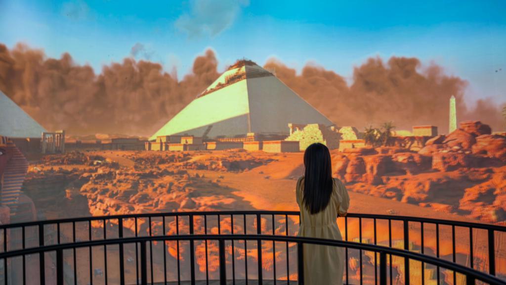 北纬30°地理馆内设有5D影院,播放“天下一宇·行走地球”5D影片,带领观众沉浸式体验乘坐热气球,以俯瞰世界的角度,触摸古老地球记忆的遗存地,开启一场多姿多彩的跨境环球之旅,通过呈现反映当下人类生存和历史的横截面,一幅探寻未来世界发展的全景图徐徐铺开。