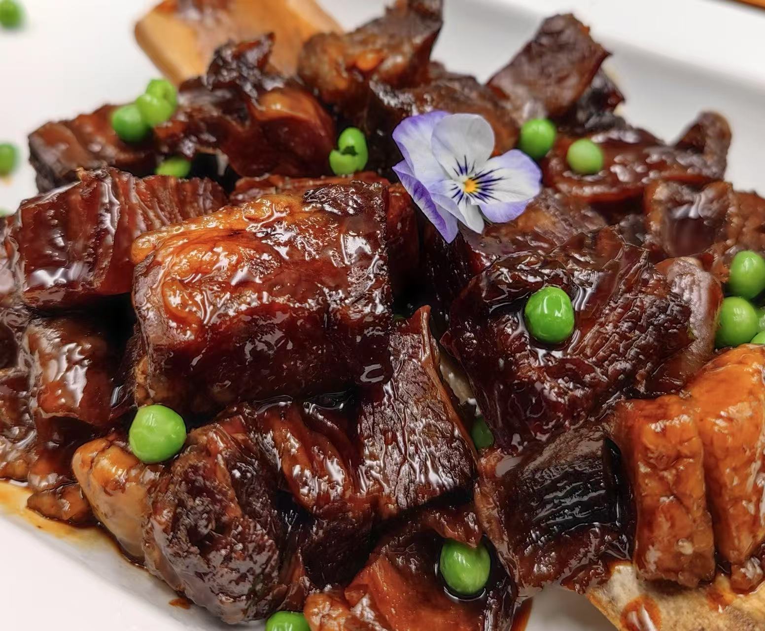 酒店特色菜品:碧绿煎鲜贝、碧绿酱香牛肝菌、豉油土猪肉、国际海皇羹、国际酱香牛排、红焖羊腩煲、腊肉花生苗、莲花奶香盏、绍式糟四样、特色目鱼大烤、网红脆皮豆腐等。