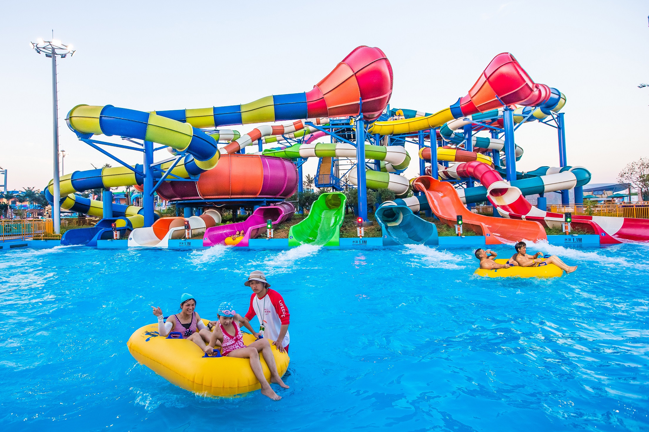 绍兴梦幻水世界,位于绍兴市越城区镜湖核心区,占地150亩,斥资5亿打造。水世界倡导亲水而嬉,设计充分考虑游客的体验感与互动性,营造极富文化主题与游乐互动的环境,完美呈现玩水新乐趣。水世界设计风格以海洋元素为基础,绚丽的色彩、细腻的做工、精良的材料,打造游客心中梦幻般的海洋王国。由加拿大公司专门为水世界设计生产八大顶级游乐设备,近四十条滑道花样组合,所带来的激情体验与亲密互动,全方位释放亲水、嬉水、乐水的无限魅力和夏日清凉。绍兴梦幻水世界已成为绍兴旅游业的标杆,夏季玩水的圣地。