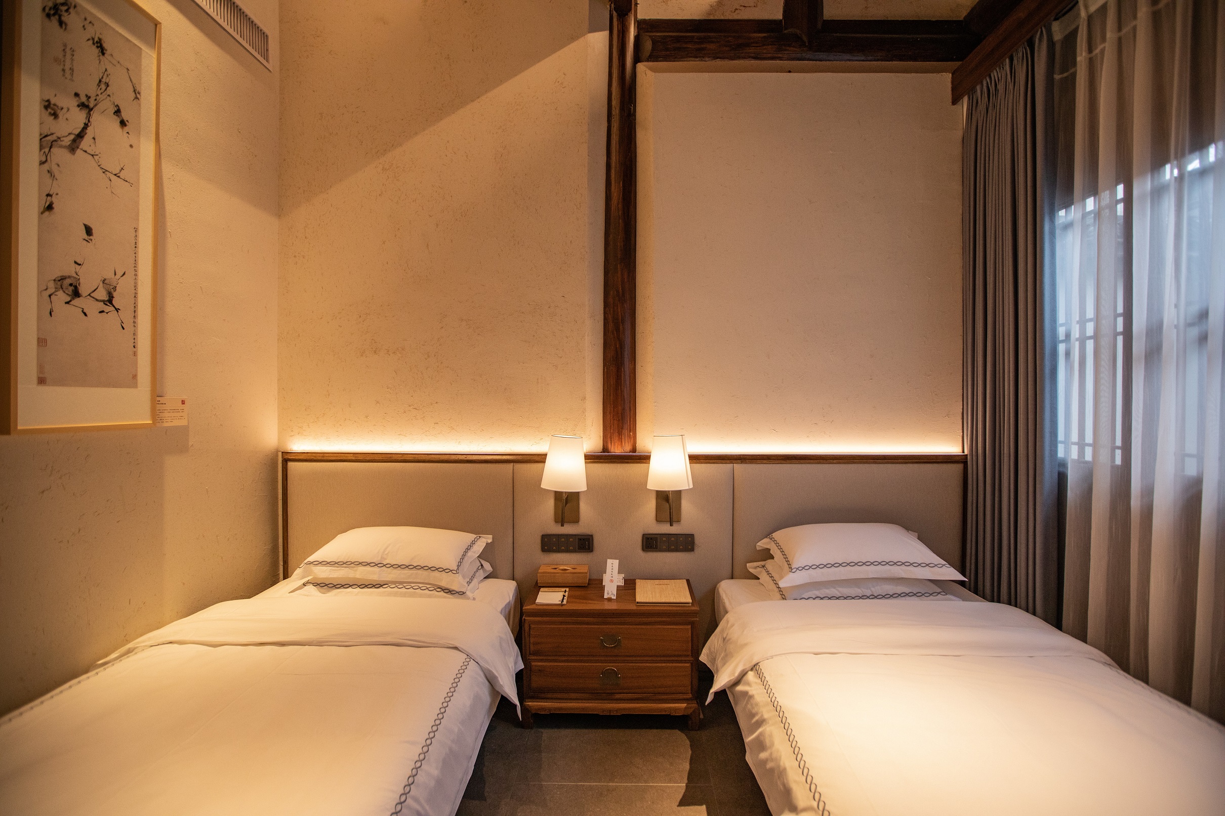 青藤别苑由绍兴特色台门建筑改建而成,客房古朴清雅,空间线条干练,以低调设计表达空间的本质